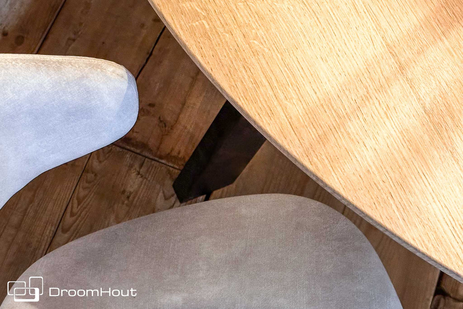Ronde tafels zijn ideaal om ruimte te besparen en bieden voldoende zitplaatsen. De Fabio ø120 biedt plaats aan vier personen, terwijl de ø150 zelfs zeven personen comfortabel kan laten zitten. Dankzij de slanke 3-poot heb je geen last van een tafelpoot die in de weg zit. Liever een 4-poot? kijk dan eens naar de eetkamertafel DroomHout Sergio. Hetzelfde slank ogende blad, maar net een andere poot.